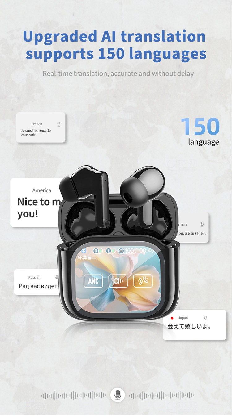JM19 AI Translator Earbuds Wireless TWS Colorful Touch Screen Headset Long Standby Noise Cancelling In-ear Earphone with Display