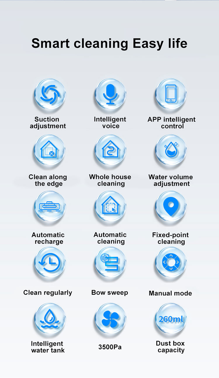 Voice Control: Supports intelligent voice commands to start/stop cleaning or switch modes with simple voice prompts.
