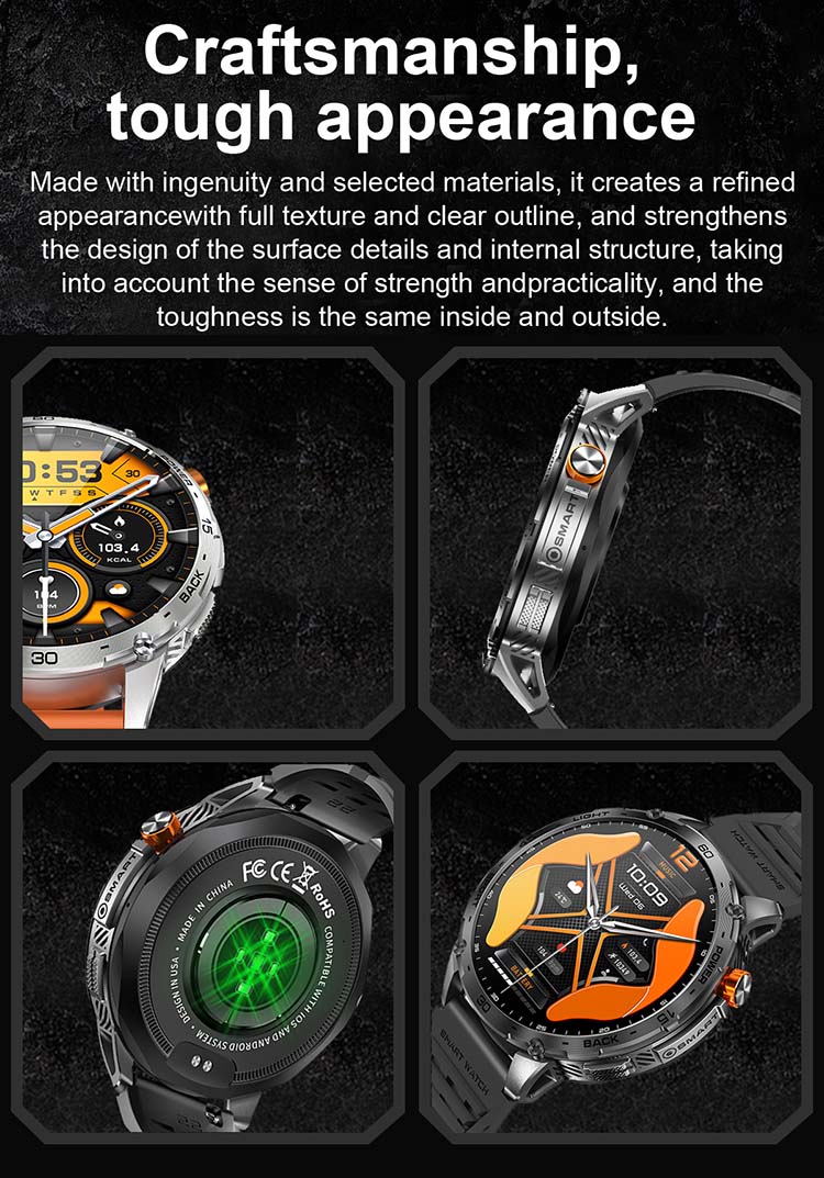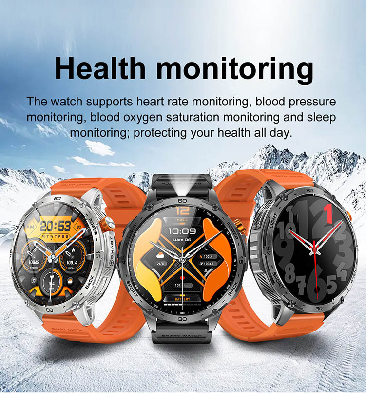 New K72 Smart Watch with GPS Compass Flashlight 580mAh Battery 3ATM Waterproof Outdoor Sports Fitness Tracker Smartwatch for Men