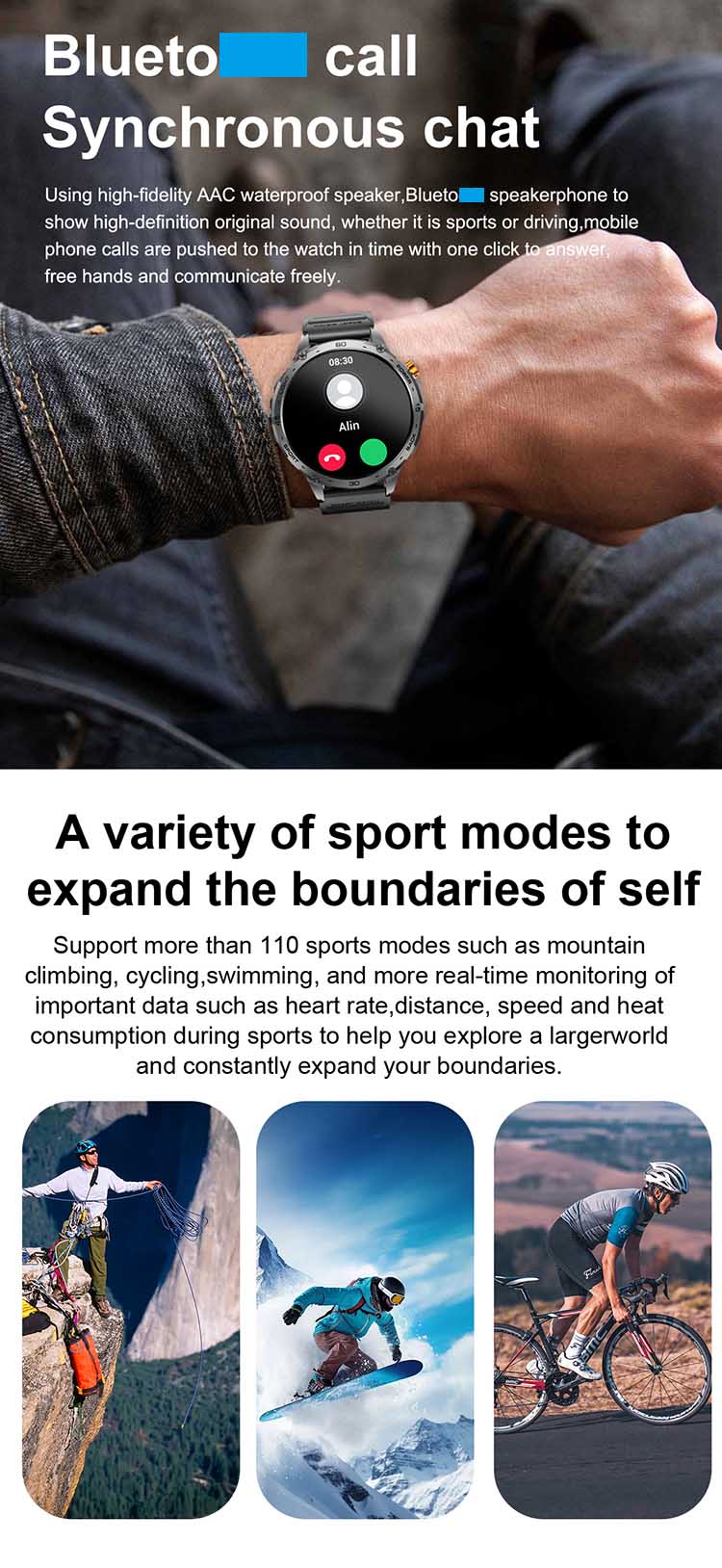 Practical Tools: Flashlight, stopwatch, multi-sport modes, remote camera, and multi-language support.