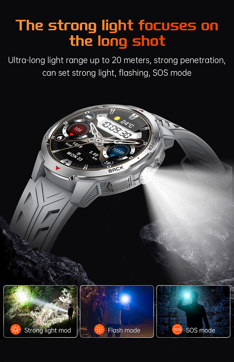 K67A GPS Sports Smart Watch LED Flashlight IP68 Waterproof Barometric Compass Altimeter AMOLED Smartwatch 530 mAh Battery