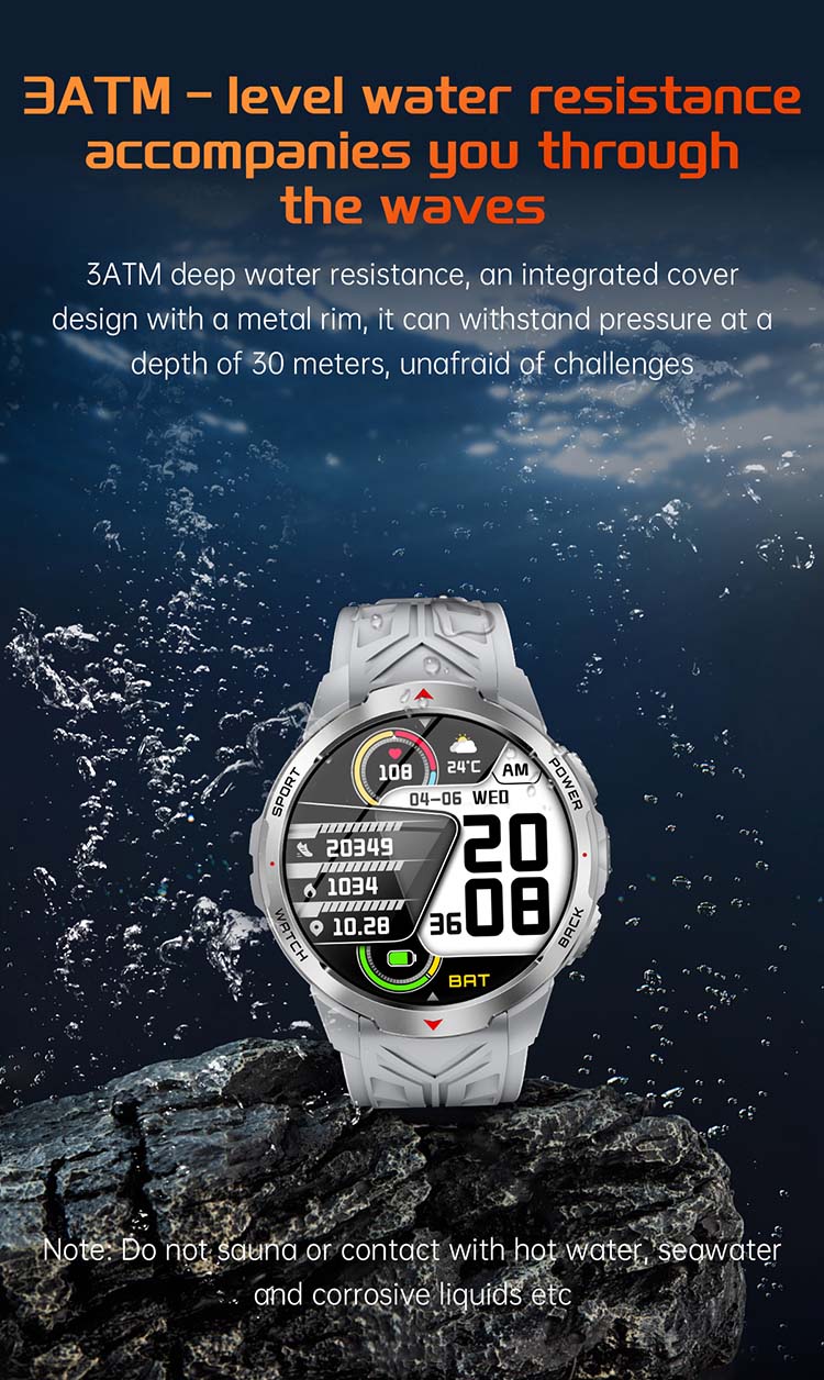 IPX8-3ATM Waterproof: 30m depth protection for swimming & daily use.