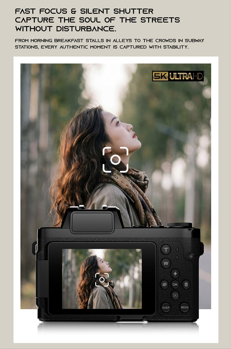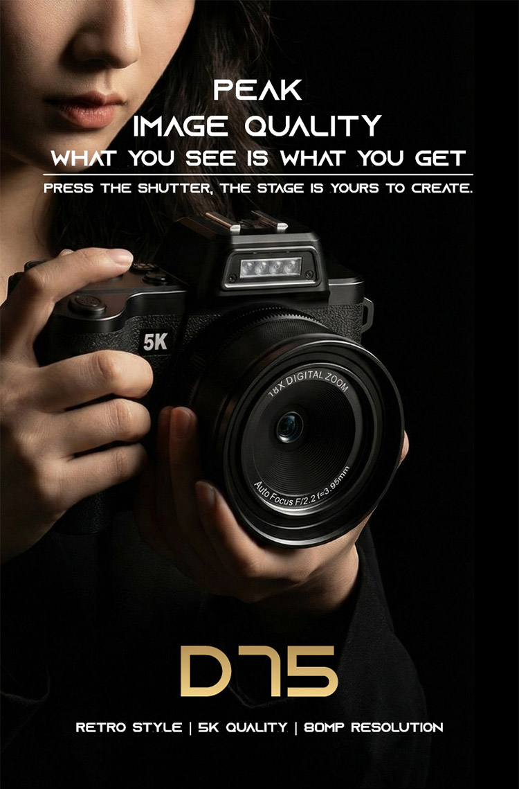 New D75 Digital Camera 5K 4K HD Video Recording Photo Shooting 18X Zoom Portable Retro Blogging Vlogging Camera for Photography