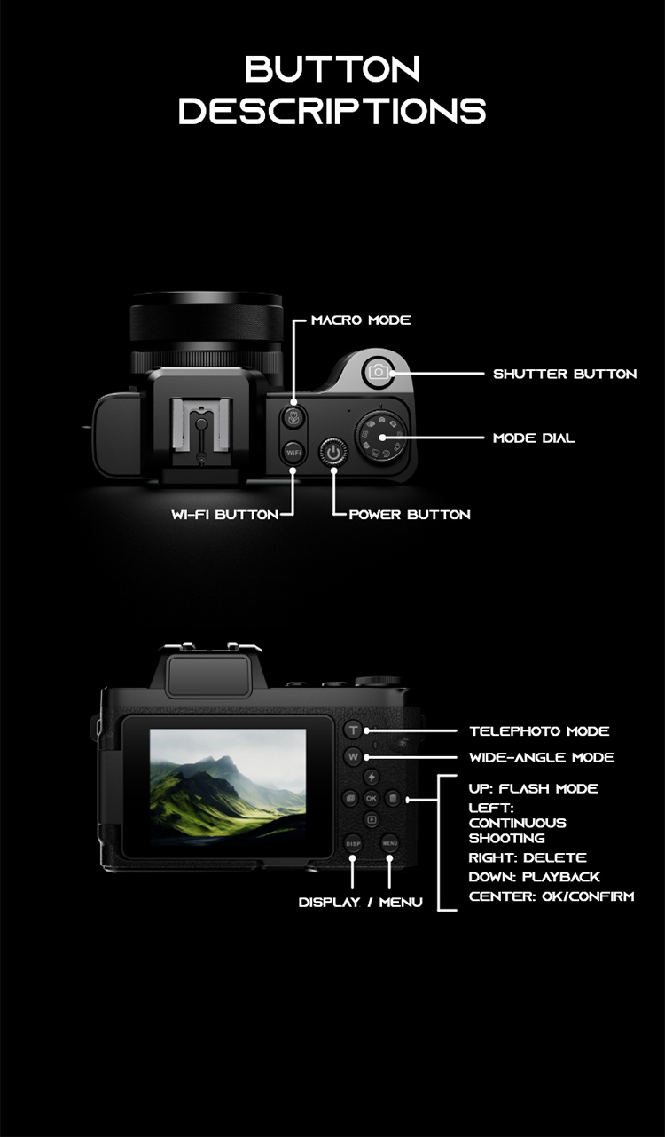 2.4G WiFi direct connection to the APP for remote control, playback, and file management.