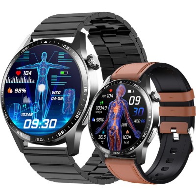 2024 Non-invasive Blood Lipids ECG Health Wrist Watches ET280 IP68 Waterproof 2.04" Amoled Display SOS Calls Fitness Smart Watch
