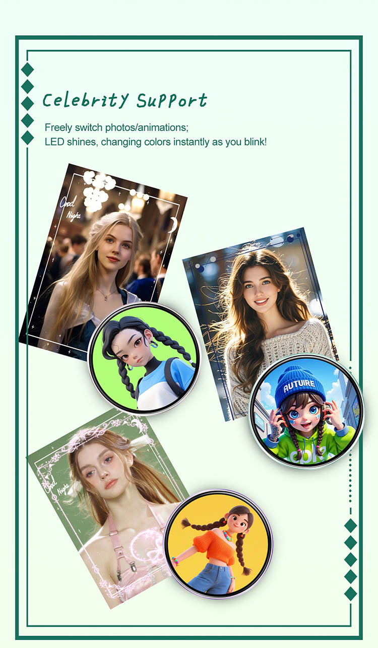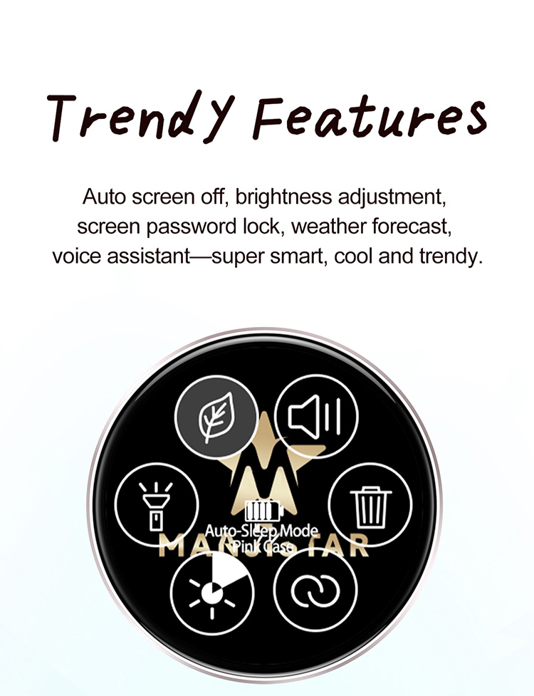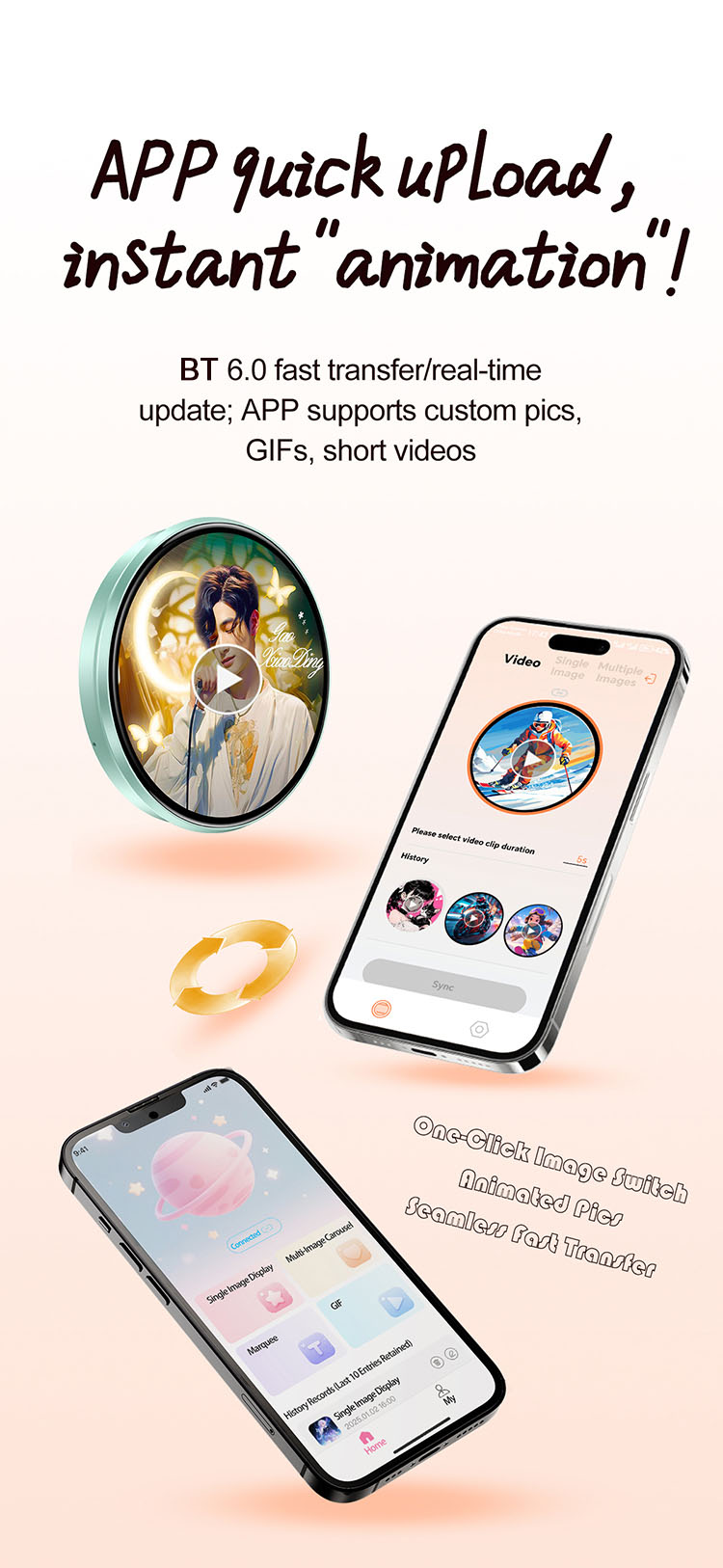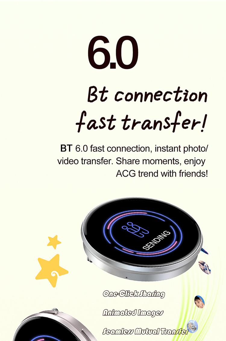 One click pairing and connection of dual Bluetooth chips, electronic bar playing Bluetooth music player, weather status reminder, voice assistant, password lock function, remote control of mobile phone photography, A and B electronic bars exchanging pictures and videos in seconds, drop-down interface control (send, receive, exchange, delete pictures, adjust brightness, turn on response lights, settings), 7-color response lights (support click frequency control), screen constantly on, device scanning connection, touch screen operation, static/dynamic image switching, low battery reminder, charging status display, transmission progress display, etc