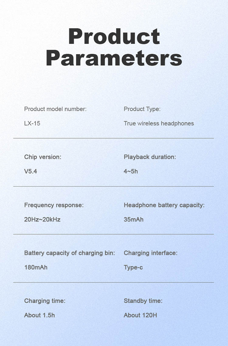 | Product name | LX-15 Wireless Translator Earbuds |
