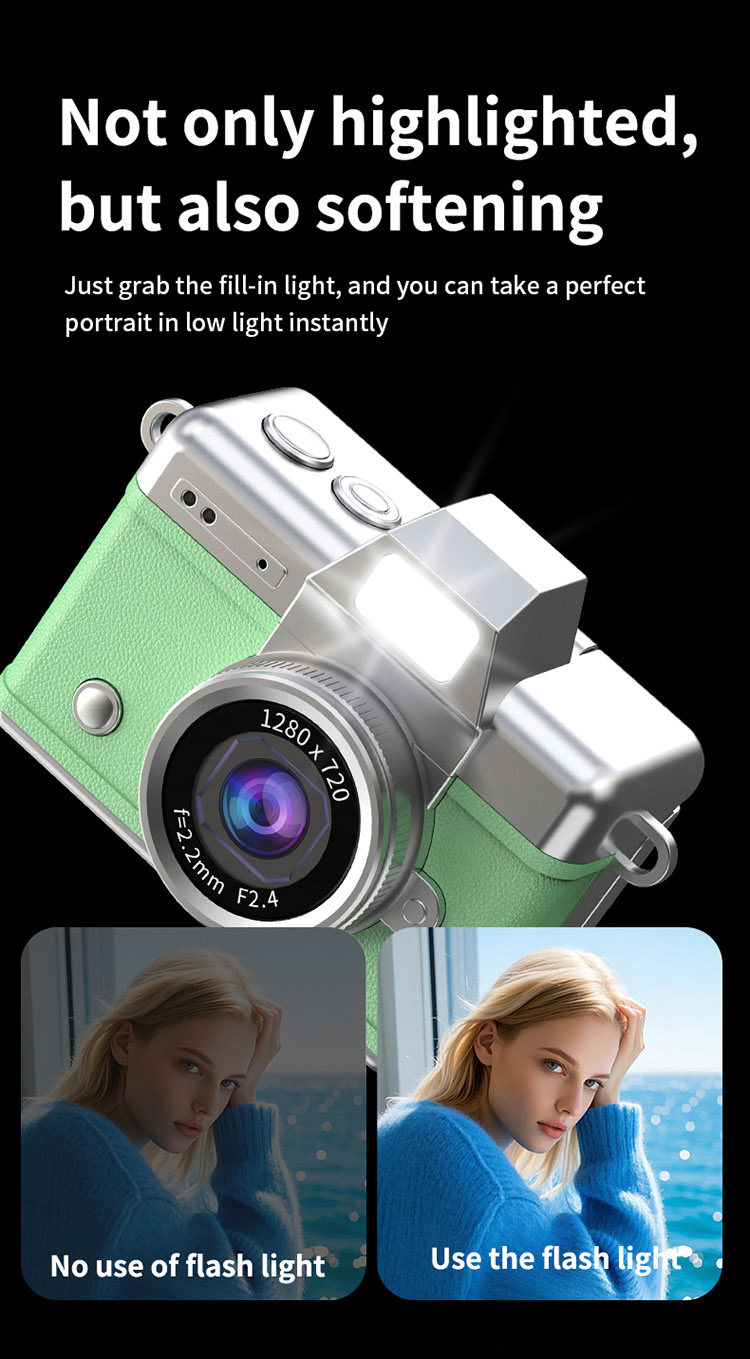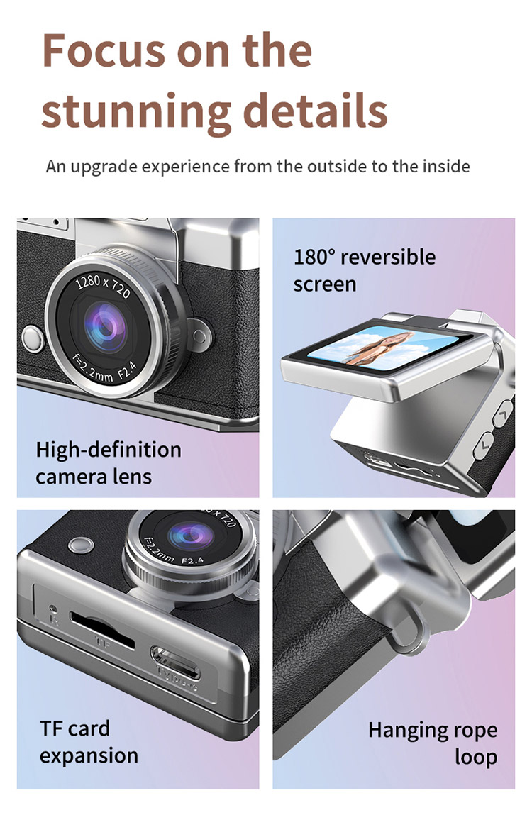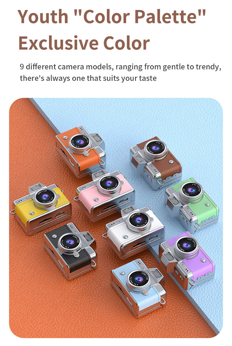 | Feature | 100W HD Digital Camera with Flip Design, 1.47-inch HD Display, Suitable for Bag Accessories or Necklace Accessories, Mini Camera. Makes Clicking Sounds and Lights Up. Supports Power On/Off Screen, Laser Engraved Logo on Case, Custom Packaging Box, etc |