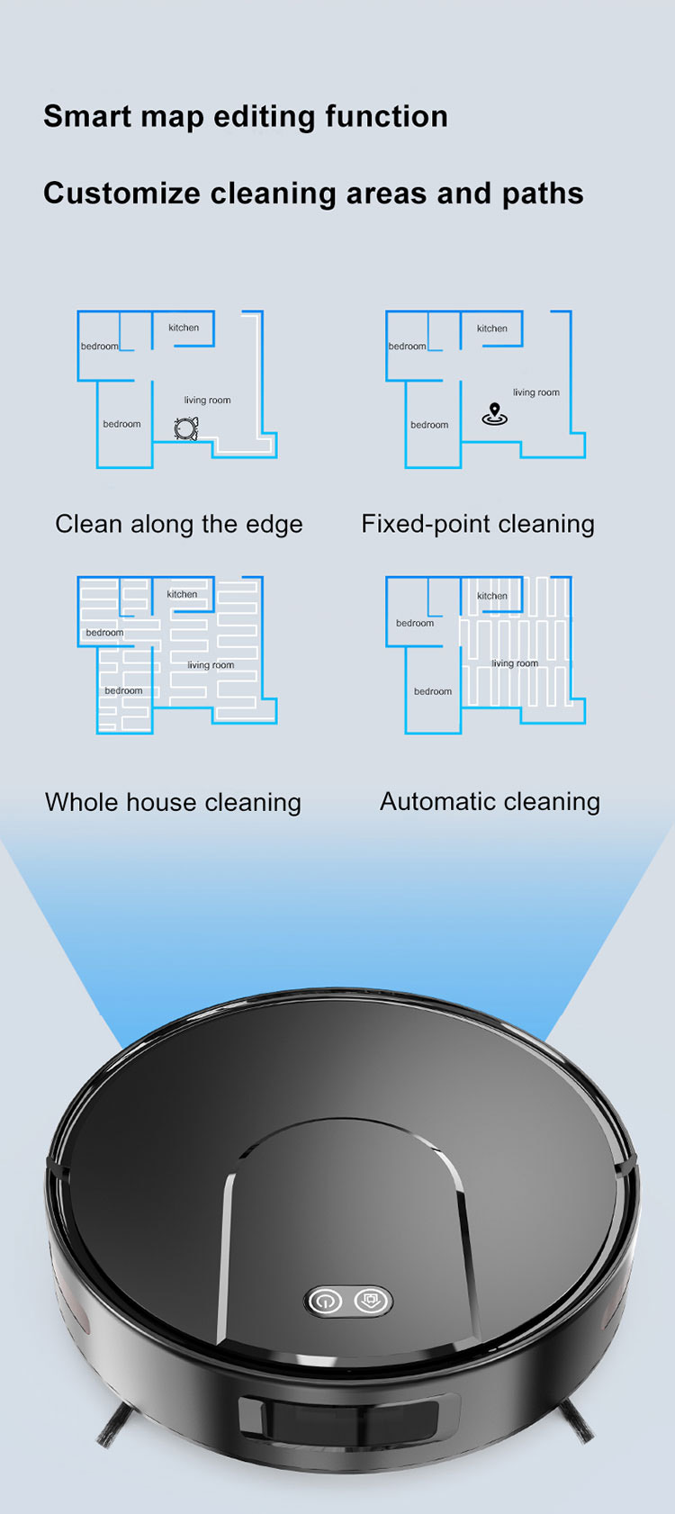 Comprehensive Coverage: Supports edge cleaning and full-area cleaning to eliminate blind spots like corners and under furniture.