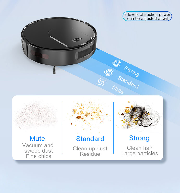 Adjustable Suction Power: Customize suction levels based on floor condition and dirtiness, balancing cleaning efficiency and energy saving.