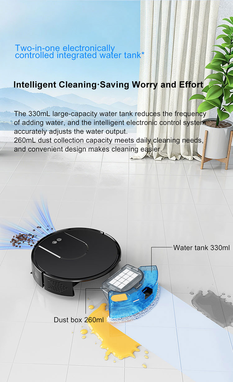 Voice Control: Supports intelligent voice commands to start/stop cleaning or switch modes with simple voice prompts.