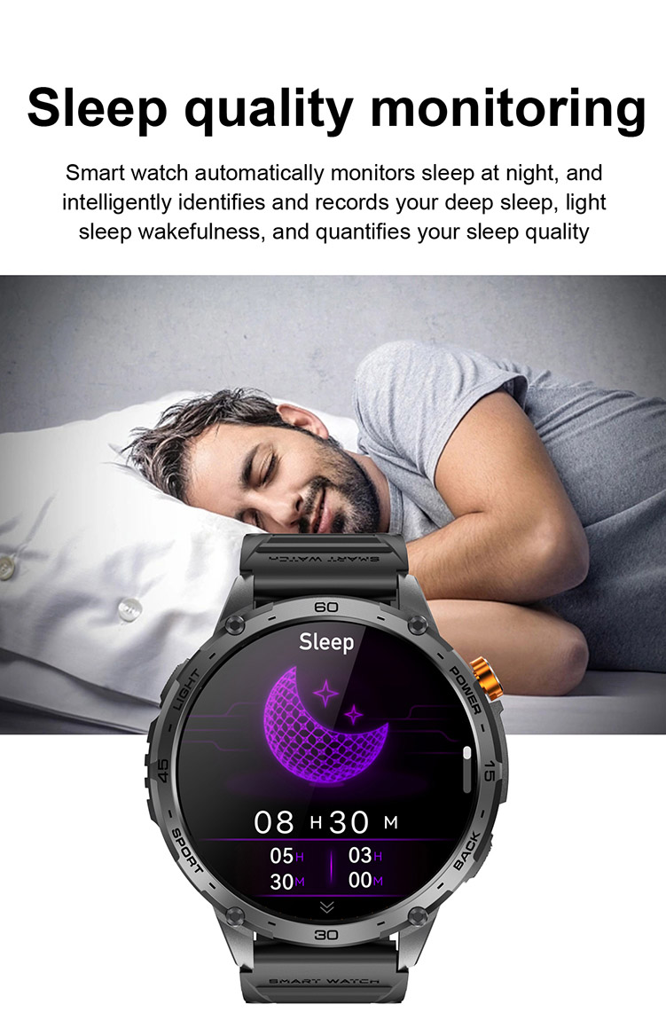 Sleep & Activity Analysis: Monitors sleep duration/quality, steps, calories, and distance, with data synced to FitCloudPro.