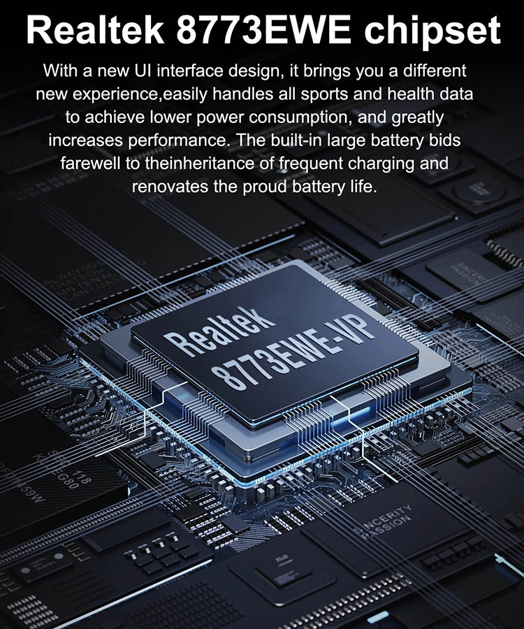 Realtek 8773EWE-VP Chip: Smooth operation, stable data transmission, and low power consumption.