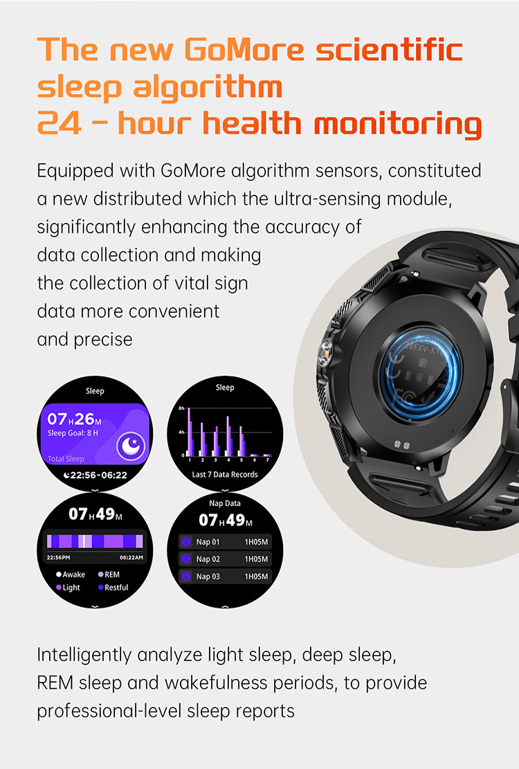 Comprehensive Health Tracking: Real-time heart rate, blood oxygen, stress & sleep monitoring; Accurate step, distance & calorie tracking via Da Fit app; Go more scientific algorithm for fitness insights; Female health tracking support.