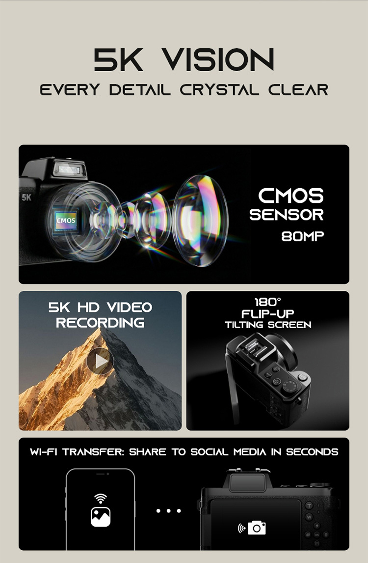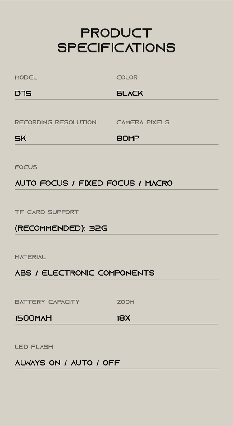 New D75 Digital Camera 5K 4K HD Video Recording Photo Shooting 18X Zoom Portable Retro Blogging Vlogging Camera for Photography