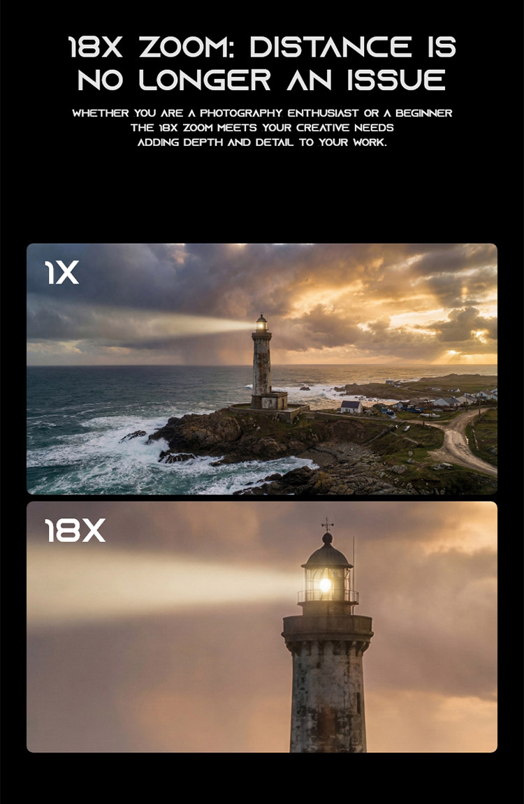 12MP image sensor, supporting up to 64M photo resolution & 5K video recording for crisp, detailed visuals.