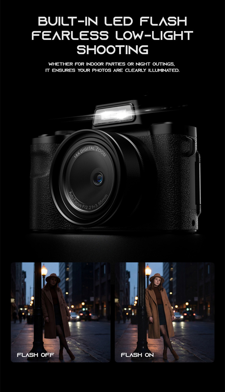 2.83" IPS high-definition screen + low-power LED fill light for clear framing in low light.